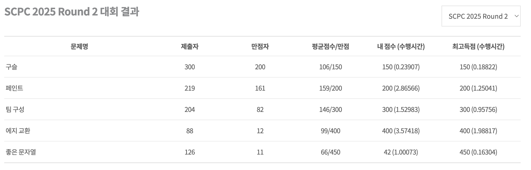 | SCPC 2025 1차 예선 후기 (0) | 2025.09.01 |