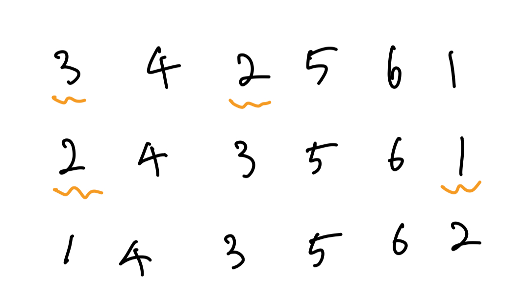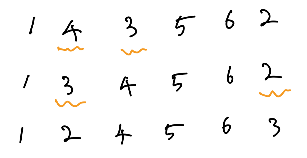하지만 여기서 반례가 존재하는데, 중복하는 수들이 있는 경우이다. 만약 수열이 $ \{ 2, 2, 1\}$와 같다면, 같은 수들이 $swap$될 일은 없기 때문에 1을 정렬하는 과정에서 발생하는 답은 1이지만 위 풀이는 각각의 2에서 1번씩 세어 버려 2가 나오게 된다.